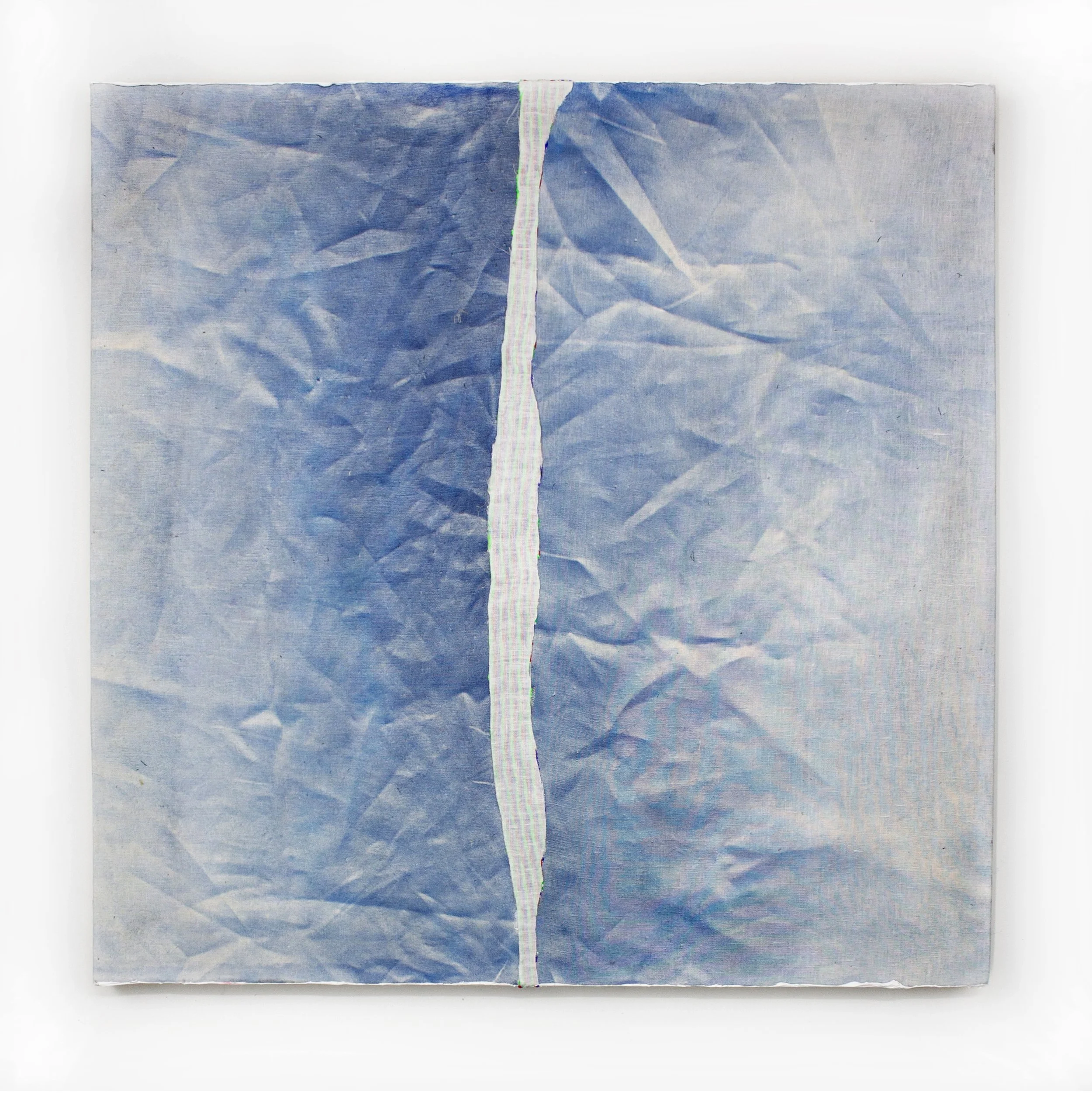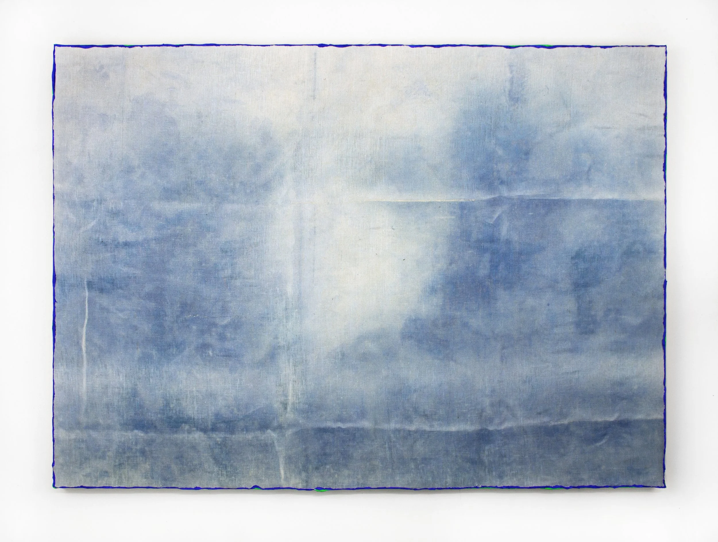 Cyanotype on linen with gesso, marble dust, and gouache on edges